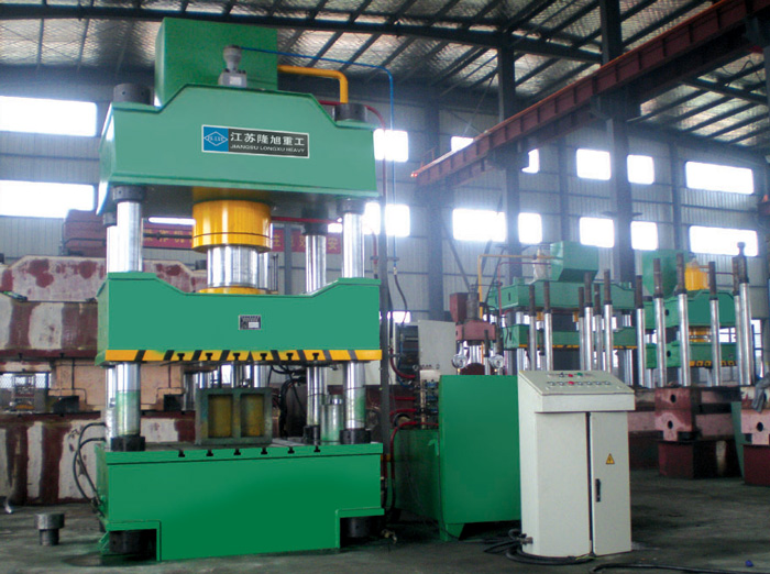 性能特點:計算機(jī)優(yōu)化設(shè)計,三梁四柱式結(jié)構(gòu),簡單、經(jīng)濟(jì)、實用;液壓控件采用插裝閥集成系統(tǒng),動作可靠,使用壽命長,液壓沖擊小,減小了連接管路與泄漏點;獨立的電氣控件系統(tǒng),工作可靠,動作直觀,維修方便;采用按鈕集中控制,具有調(diào)整、雙手單次循環(huán)二種操作方式??蓪崿F(xiàn)定程、定壓二種成型工藝,并且具有保壓延時等功能;工作壓力、行程根據(jù)工藝需要在規(guī)定范圍內(nèi)可調(diào)。